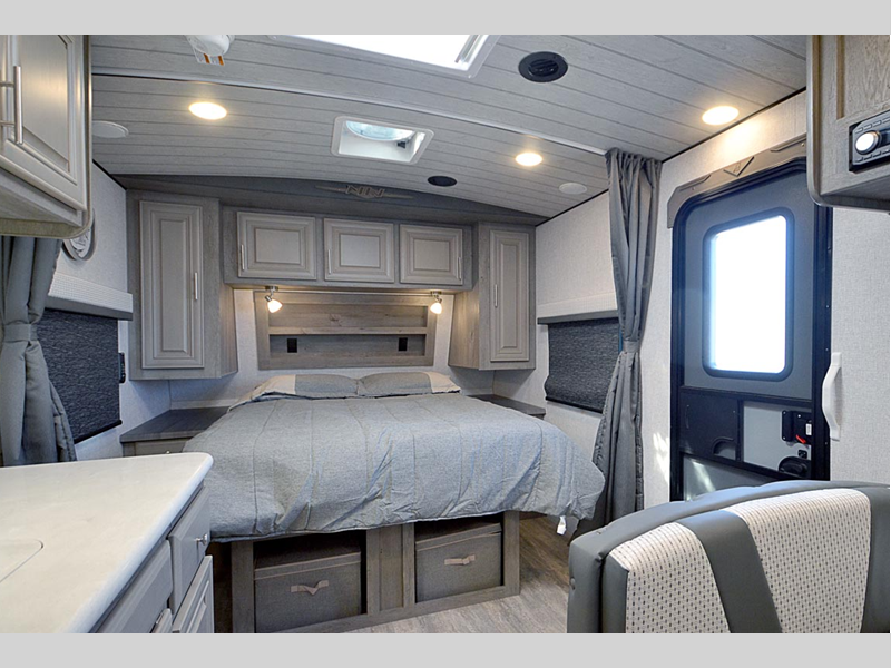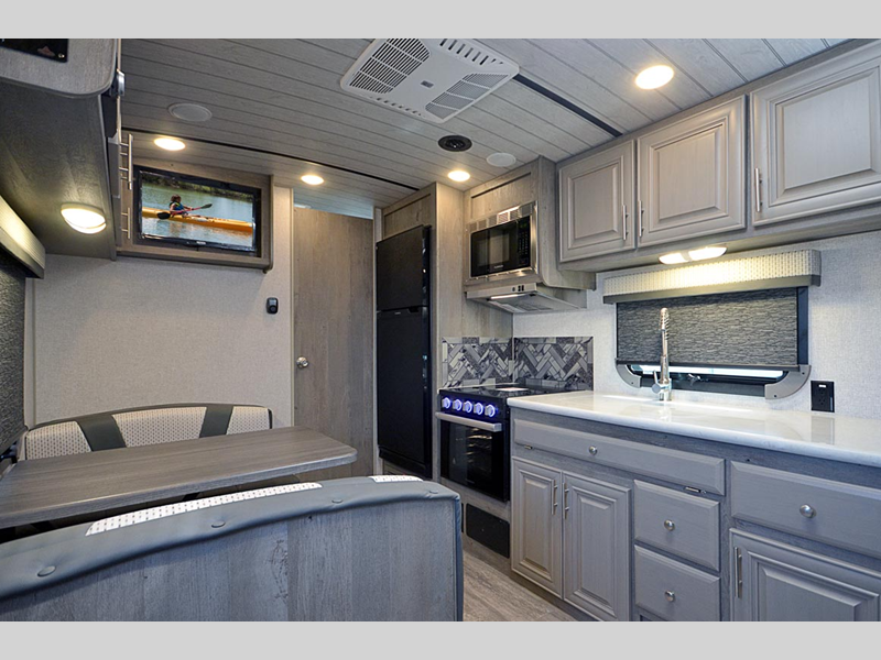 Sleeps 4 Length 23 ft 10 in Ext Width 8 ft 6 in Ext Height 11 ft 10 in Interior Color Moonstone, Carbon, Kona Hitch Weight 675 lbs GVWR 10800 lbs Dry Weight 5910 lbs Cargo Capacity 4890 lbs Fresh Water Capacity 100 gals Grey Water Capacity 42 gals Black Water Capacity 35 gals Tire Size ST235/85R16 Furnace BTU 25000 btu Available Beds Queen Refrigerator Type 12V Refrigerator Size 10 cu ft Cooktop Burners 3 Number of Awnings 1 Axle Weight 5235 lbs LP Tank Capacity 30 Water Heater Capacity 10 gal Water Heater Type Gas/Elect Quick Recovery AC BTU 13500 btu TV Info LR 32" 12V LED TV Awning Info 16' LED w/Adjustable Pitch & Weatherguard Axle Count 2 Number of LP Tanks 2 Shower Type Standard Similar Floorplans