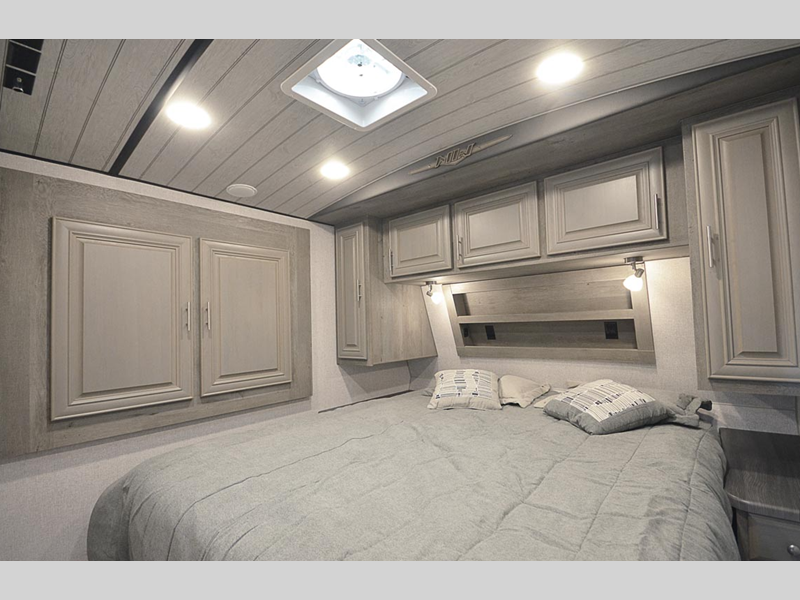 Sleeps 4 Slides 2 Length 31 ft 2 in Ext Width 8 ft 6 in Ext Height 11 ft 4 in Interior Color Moonstone, Carbon, Kona Hitch Weight 1000 lbs GVWR 12800 lbs Dry Weight 8125 lbs Cargo Capacity 4675 lbs Fresh Water Capacity 100 gals Grey Water Capacity 55 gals Black Water Capacity 55 gals Tire Size ST235/85R16 Furnace BTU 30000 btu Available Beds Queen Refrigerator Type 12V Refrigerator Size 10 cu ft Cooktop Burners 3 Number of Awnings 1 Axle Weight 7125 lbs LP Tank Capacity 30 Water Heater Capacity 10 gal Water Heater Type Gas/Elect Quick Recovery AC BTU 13500 btu TV Info LR 32" 12V LED TV, BR 32" 12V LED TV Awning Info 16' LED w/Adjustable Pitch & Weatherguard Axle Count 2 Number of LP Tanks 2 Shower Type Standard Similar Floorplans